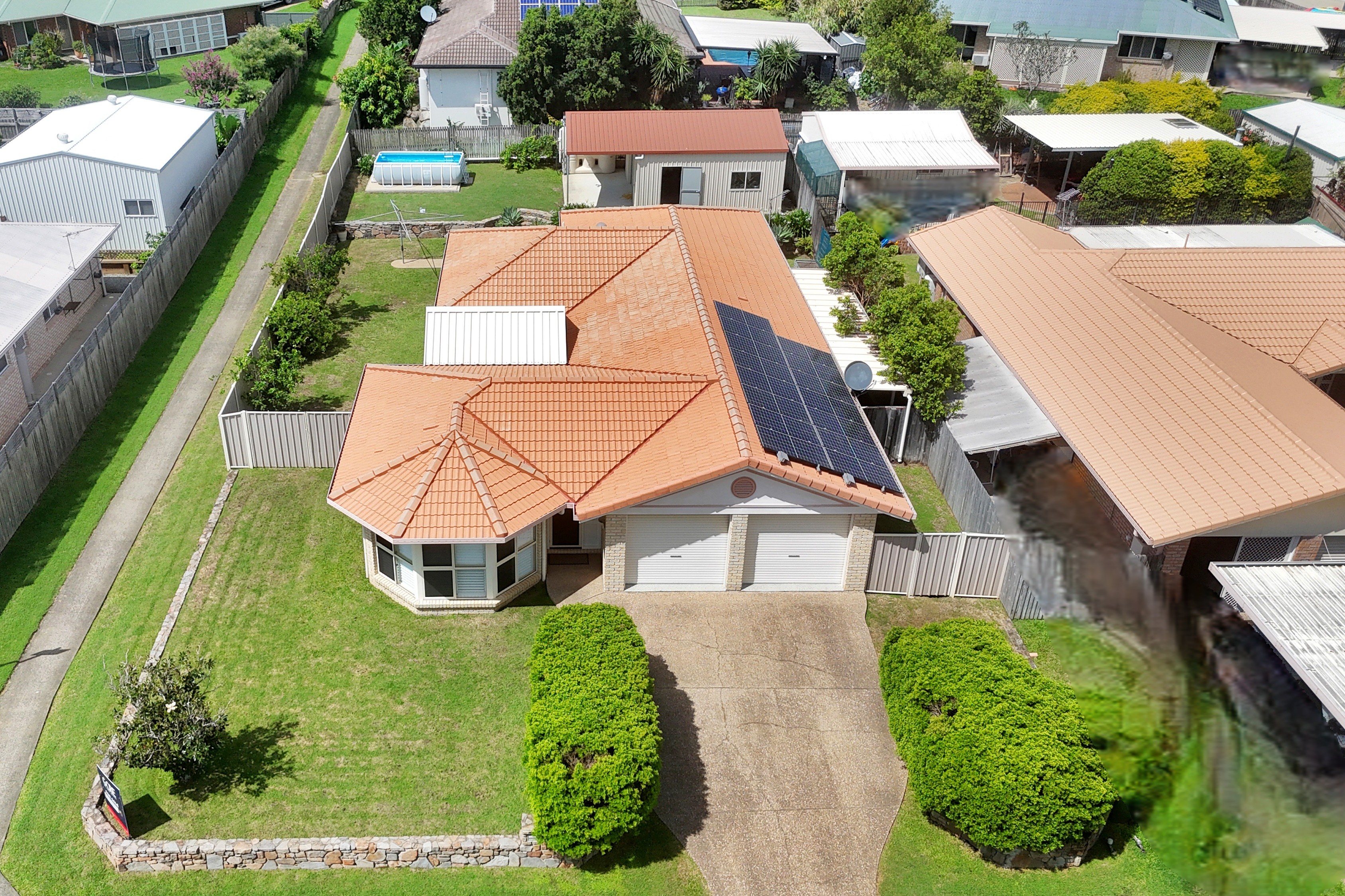 There's ample room for kids and pets to play safely in the securely fenced yard which includes established and productive fruit trees. Great storage options for all the vehicles and toys with a remote double lock-up garage plus a 6x6m shed with 3m front awning out the back. (Please note although there is gate access to the yard, there is not currently vehicle access to the shed. This could be achievable with the replacement of a section of the small retaining wall with a ramp) The home has the bonus of an equipped bore, rainwater tank and solar system to help keep water and power costs at bay.